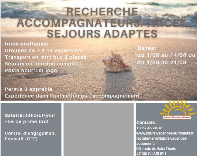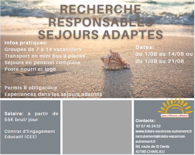 Nous recrutons toujours pour le mois d’août des accompagnateurs et responsables de séjours.