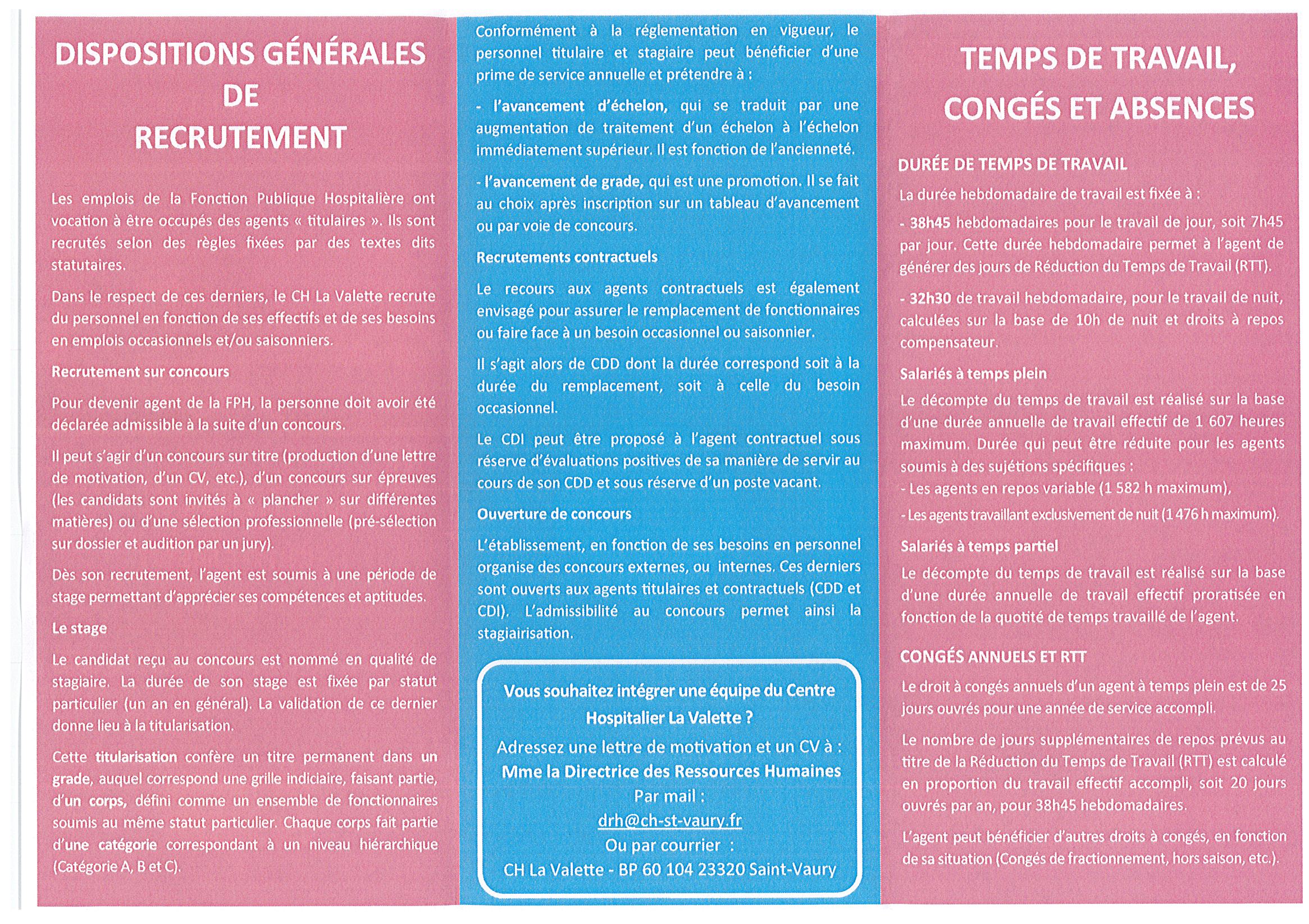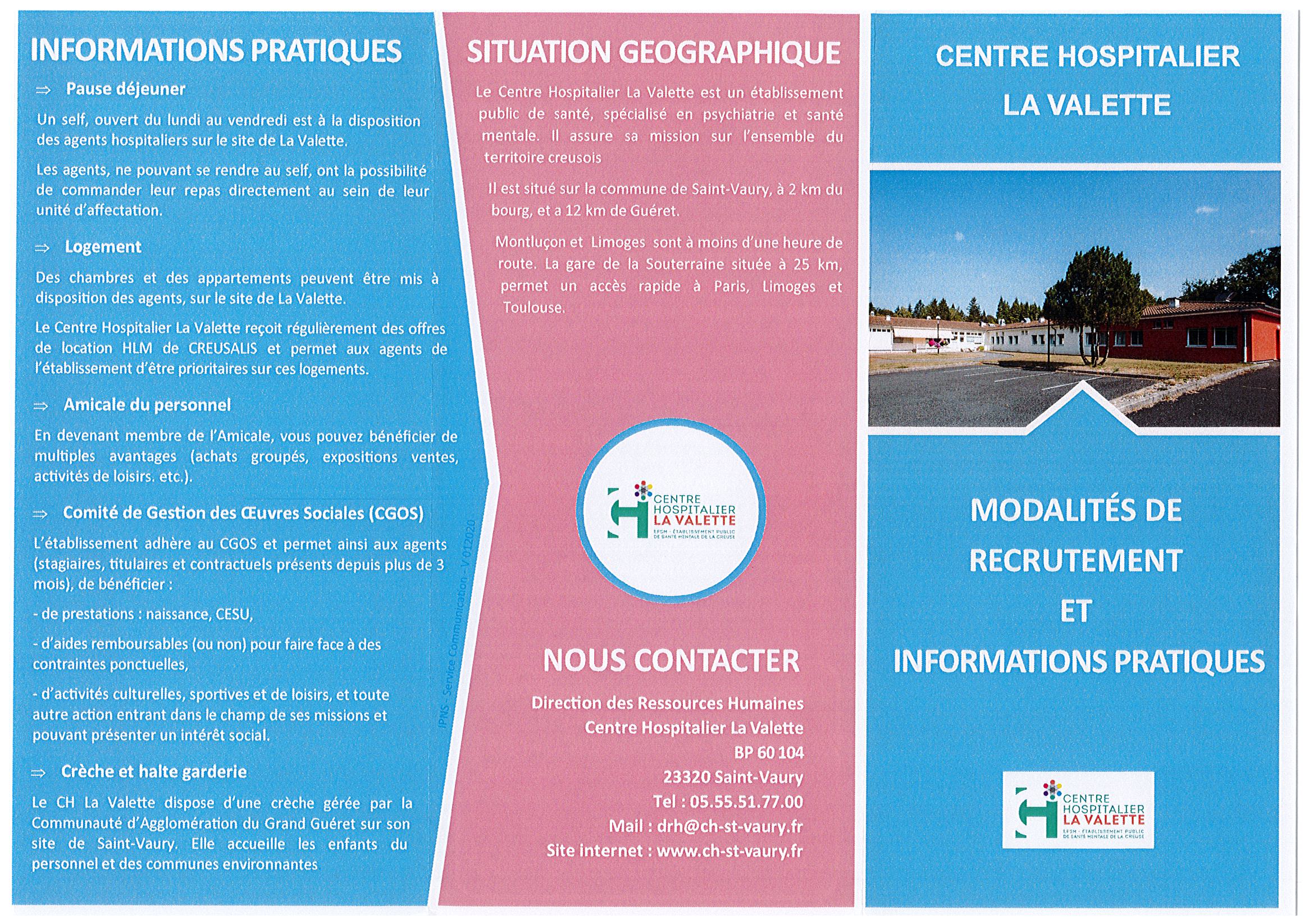 Contacter la DRH CH La Valette St Vaury au 05 55 51 77 00